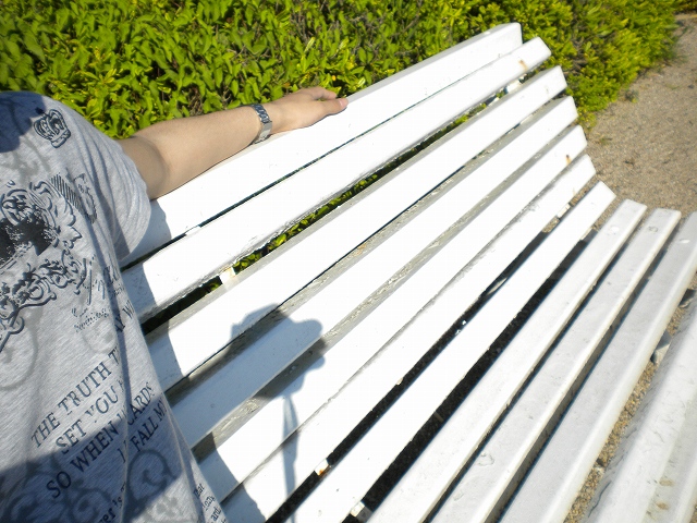海岸沿いをふと歩いていると絵にかいたような白いベンチときれいな公園がありました・・・・