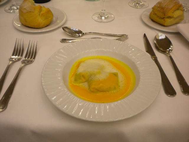 前菜:かぼちゃのムースとオレンジジェルのラビオリ
